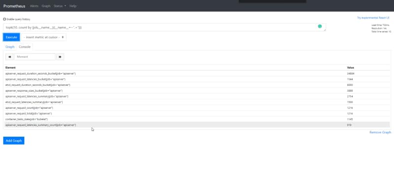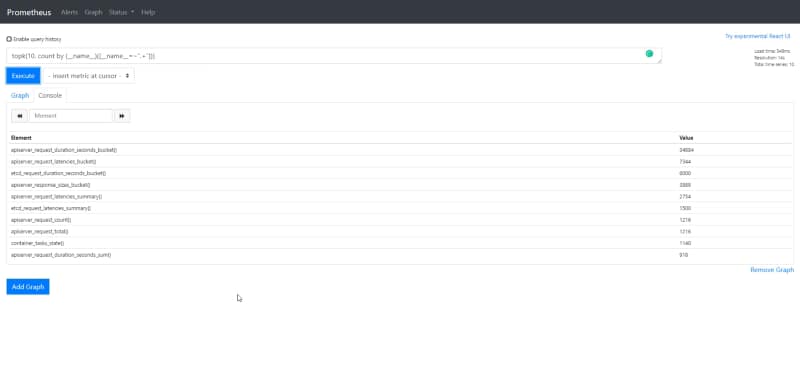 So, when I am doing that in my Prometheus deployment I get something similar to this: